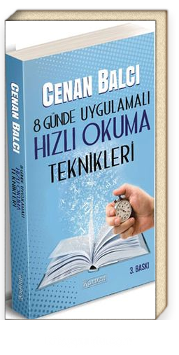 Bu kitap sizlere okuma ile ilgili pek çok kuramı açıklayıp etkili bir hızlı okuma için kullanmanız gereken yöntemleri adım adım uygulamalı olarak 8 GÜNLÜK bir zaman dilimi içerisinde basit bir dille anlatmaktadır. Eğitimlerimizde kullandığımız yöntem ve teknikleri burada sizlerle buluşturduk.